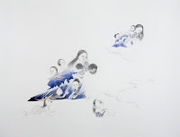Rita Bard’s watercolor on paper paintings pile up and pair down everyday objects such as couches and chandeliers into striking, sometimes ludicrous and often enchanting scenes. Bard explores philosophical and moral issues with tongue firmly in cheek. Jennifer Hoag’s photographs are visual fictions produced by importing deer into urban and suburbran environments, prompting viewers to wrestle with their assumptions about the place and function of animals in the modern world. Unfortunately, Hoag’s photographs were lacking a technical finesse to provide the viewer with a suspension of belief. Her landscapes were clearly human constructs and the heavy handed title of the series “Nature of Invasion” limited the elegiac quality of the series. Born in Taiwan and raised in America, Fay Ku is a self-described outsider, whose inspirations range from the morbid Chinese folk tales of her childhood to contemporary film and literature. Simultaneously macabre and whimsical, her beautifully-executed drawings were enigmatic, dreamlike and delightfully wicked.