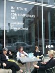Day 5. Philadelphia. The city of brotherly love and cheesteaks. Funny, that the International writerst recognized the steps Rocky ran up in the film before most Americans did. The PMA is an awesome museum and I’m ashamed to admit that I had never visited it before. Their collection of key works of modernism and contemporary art rivals… well…I don’t know. We toured with curator Kathleen Foster and assitant curator Adelina Vlas. Of course the highlight is the Duchamp collection and that mysterious Etant Donnes. Actually, it’s great to see the large glass piece The Bride Stripped Bare by her Bachelors, Even and Nude Descending a Staircase No. 1. Afterward we visited ICA and the Fabric Workshop.