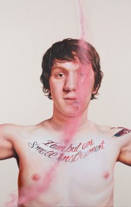 “How can I fuck this up?” That’s the question Jenny Morgan asks herself as she begins a portrait. Starting with 50 to 100 snapshots of friends, often women, but not always, Morgan selects one that reflects no smile or emotion: the person is relaxed, with their guard down and a deadpan stare. A breakthrough came when she painted her first self-portrait, exposing herself nude to the camera and then on canvas. It was brave act on her part, inspired by the fearlessness she sees in the work of Jenny Saville. Morgan then attempted to paint porn stars and prostitutes, but she didn’t feel connected to those women. “The work was insincere,” she says. Since focusing on people she knows, as Francis Bacon did, her painting has become more genuine. But the emotional states she portrays are not necessarily those of the sitter. “I’m seeing the person as a structure to put my own emotions on,” she observes.