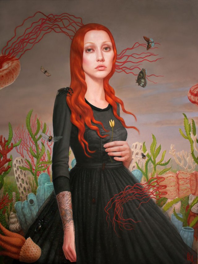 The subject of his work is primarily female and he focuses on capturing emotion or conveying emotion to the viewer. “If I can get a strong emotional response, then I feel like Iʼve done my job,” the artist says. For him, the figure is the easiest way to touch the viewer because of the human connection, and our own understanding of human emotion. “It doesnʼt really matter their level of expertise in art and art history, or how art has evolved through the years. Every person can understand the way emotion is conveyed by lowering an eyelid.” The psychological aspects of human interaction remain