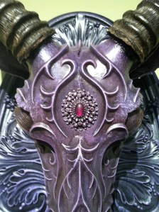 The exhibition also includes paintings by Karl Isberg from his Hermetic Book Series and fantastical animal skulls by Chris Haas. Inspired by the post-industrial Rococo works of acclaimed contemporary artist Kris Kuksi, Haas has created his own version of Damien Hirst’s diamond-encrusted skull; but where Haas’ ornate and embellished animal skulls are instilled with life and meaning, Hirst’s remain tedious and hollow.