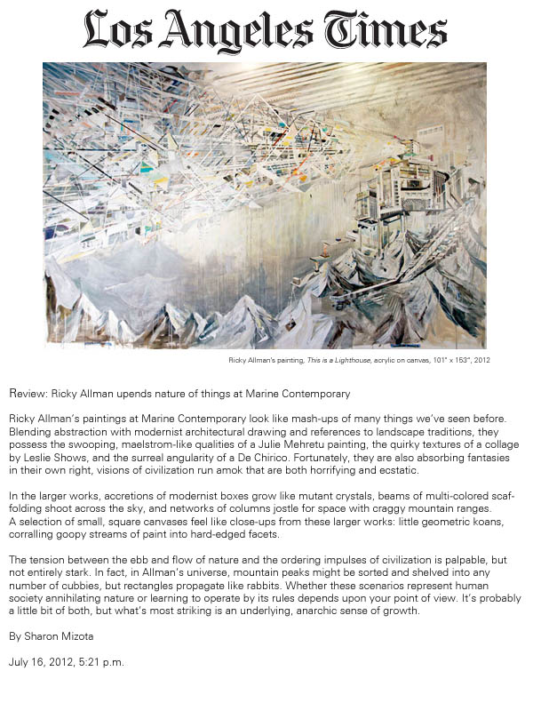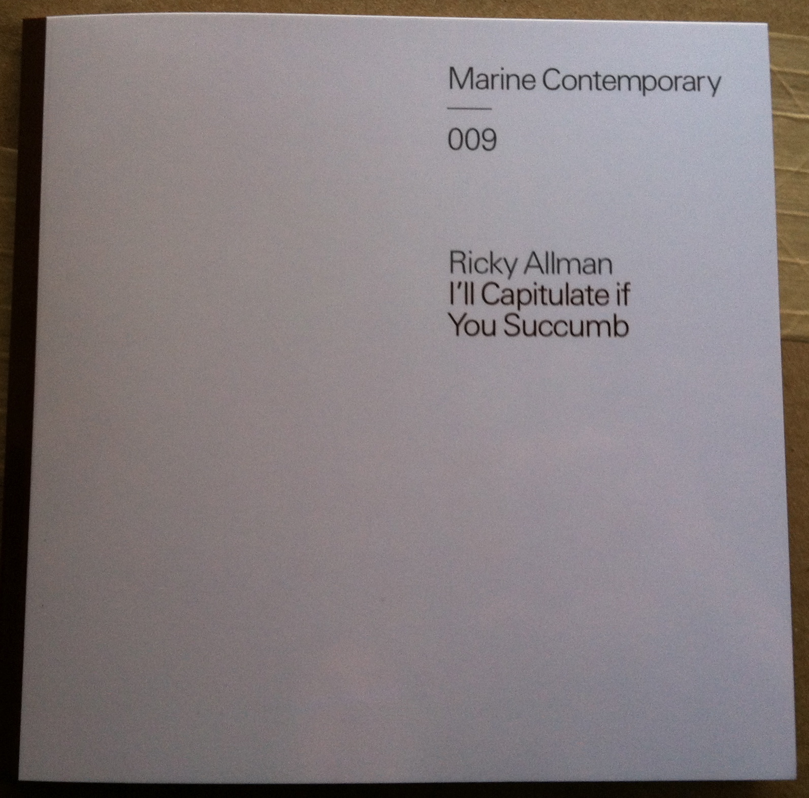 I was privileged to be acknowledged in Marine Contemporary‘s catalog for Ricky Allman’s recent exhibition. The show–(with a terrific title)–“I’ll Capitulate if you Succumb,” was Allman’s first solo exhibition with the gallery and ran from June 30-August 11, 2012.