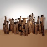 A series of found driftwood sculptures and wooden sculptures carved with a power saw leaving jagged surfaces are highlighted by Adinsibuli Stood Tall, a wooden tree woman, regal yet scarred, just like Africa.
