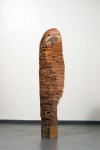 The retrospective features ceramic works from the 1970s, when Anatsui began to manipulate broken ceramic fragments alluding to ancient Nok terracotts sculptures and West African myths. He also made sculptures that merged signs and symbols from various cultures and languages created by chopping, carving, burning and etching wood.