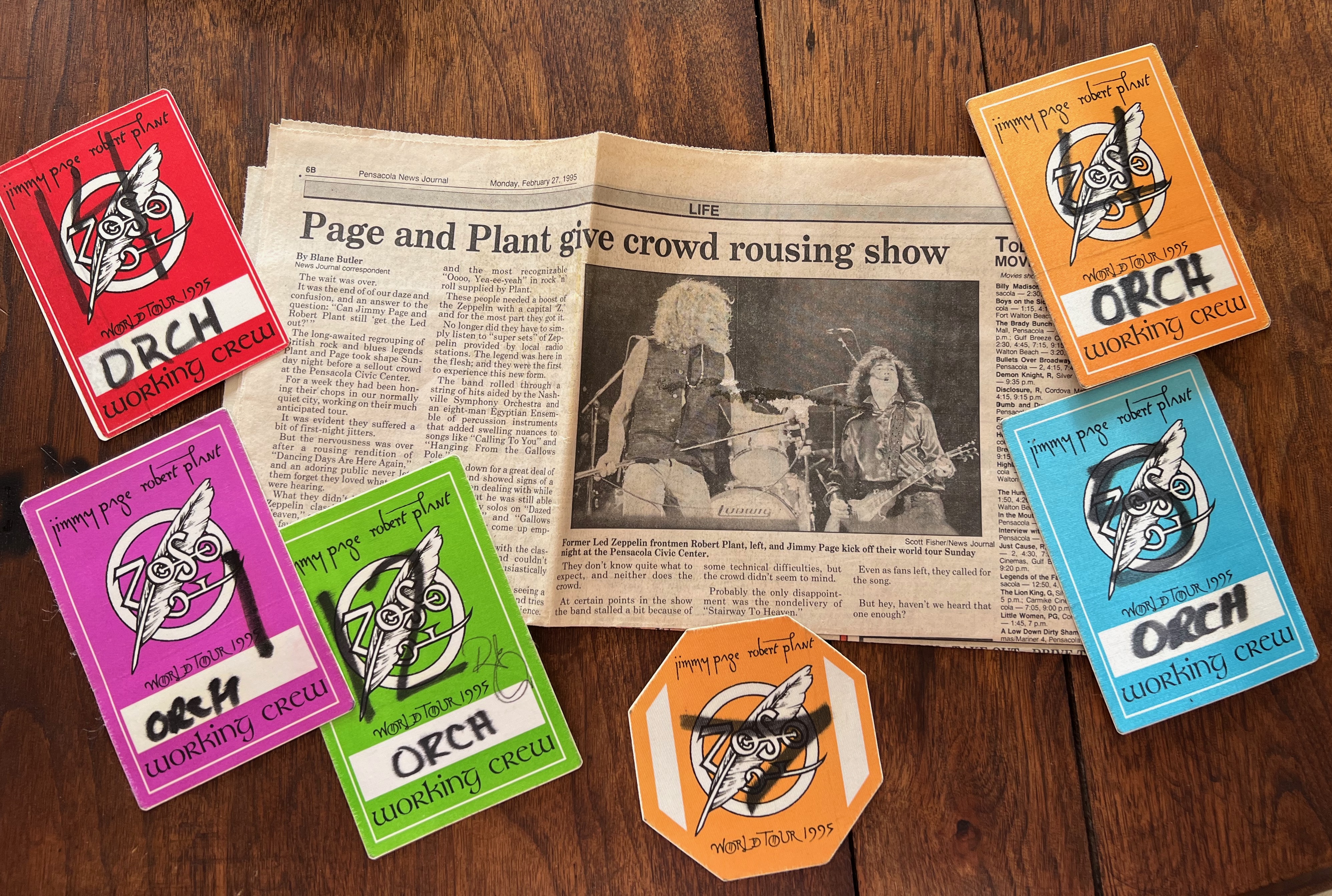 She still has the set list from the March 5, 1995 show in Memphis. They opened with “Wanton Song” and ended on the eighteenth song, “In the Evening.” “Black Dog” and “Kashmir” were their encore.
