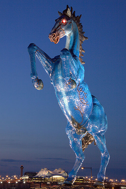 Rachel Hultin, a Denver real estate developer, has launched a Facebook page opposing Denver International Airport’s Blue Mustang. A dare after a night out drinking with friends turned into a media frenzy for Hultin, who has wanted to crowd-source a response to the Luis Jimenez sculpture that greets visitors at the airport. Hultin has been featured in the New York Times, The Wall Street Journal, and on CNN.com. A supporting Facebook page, Support the Bad Ass DIA Mustang, has only garnered 133 supporters.