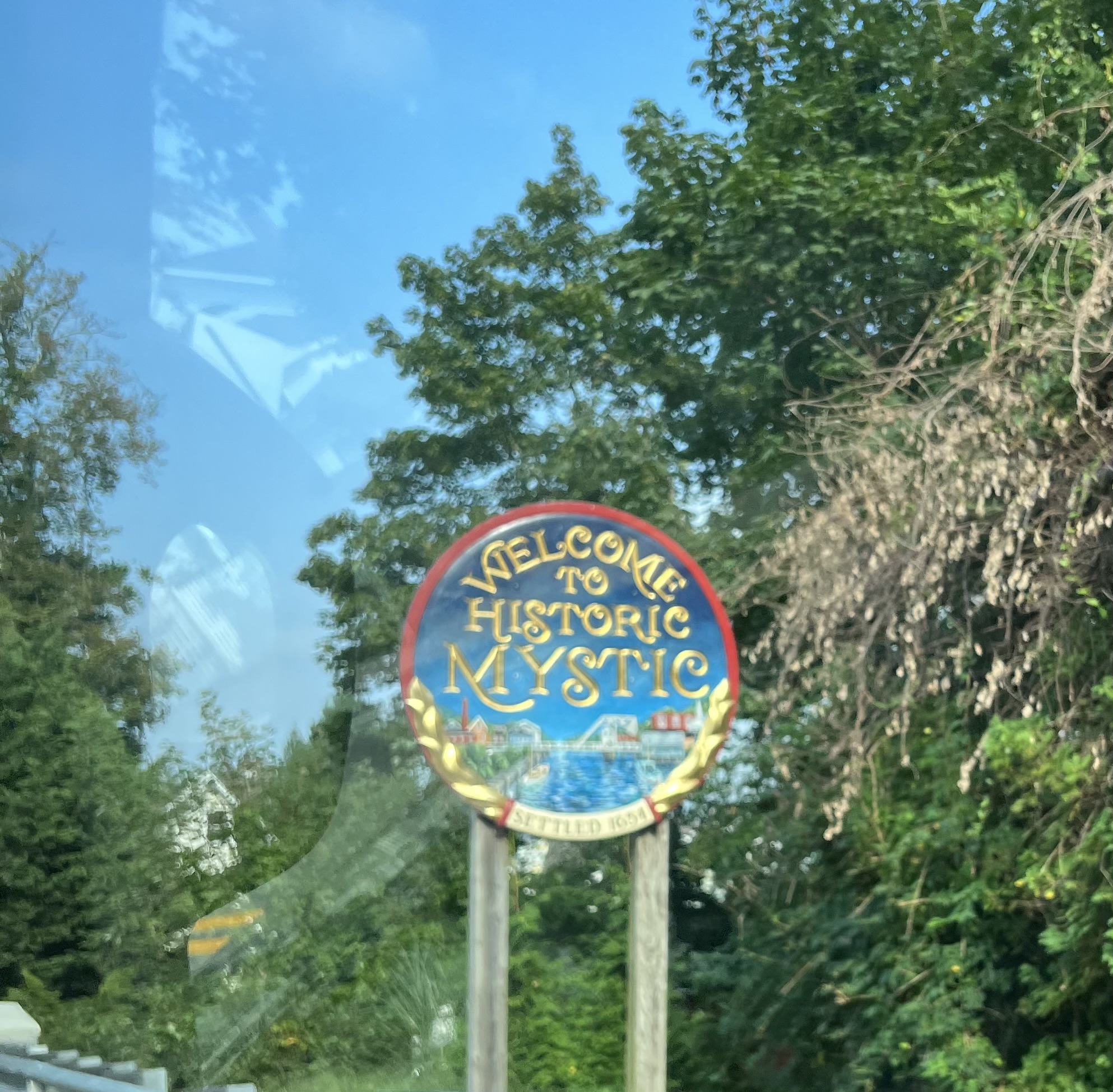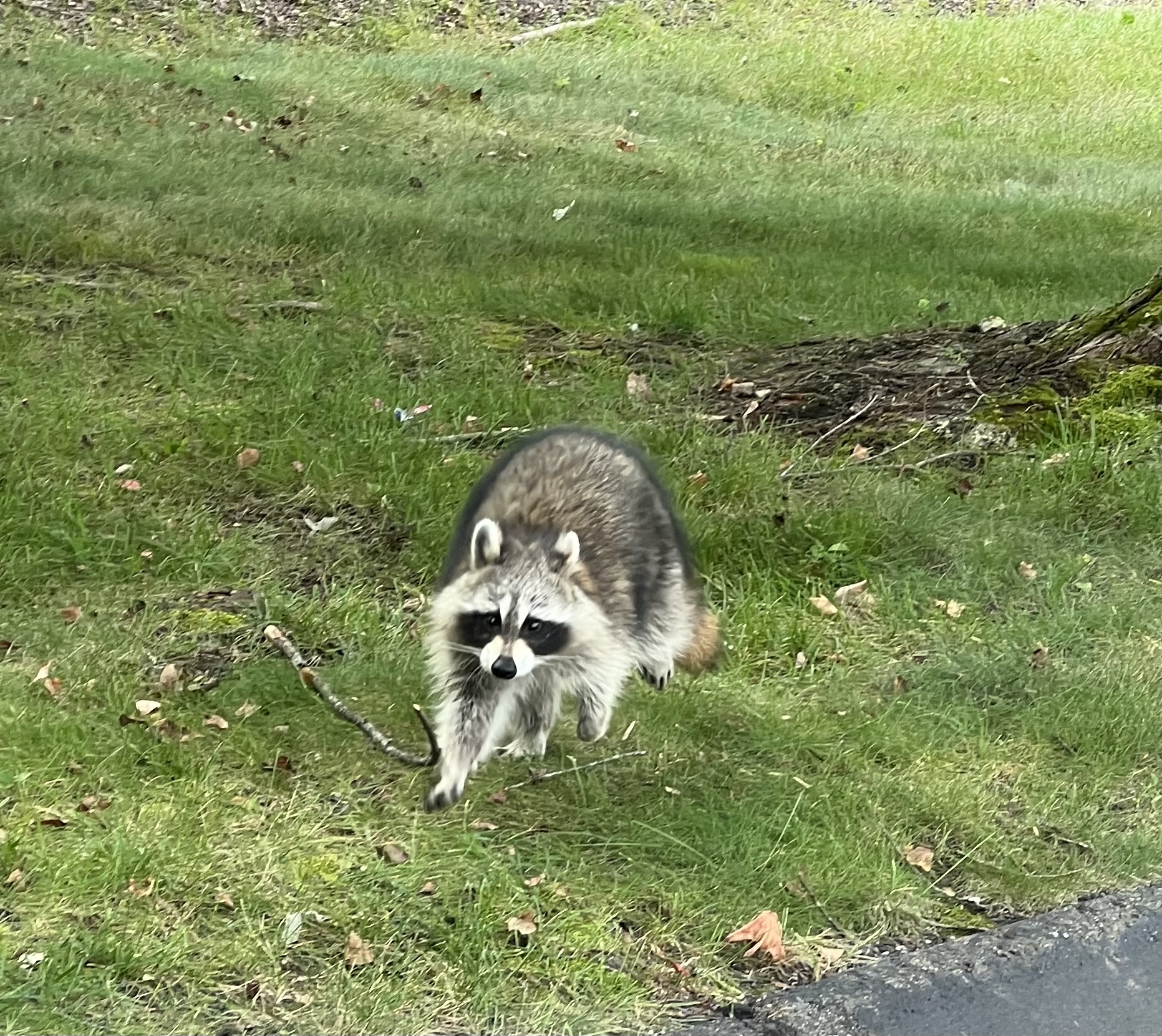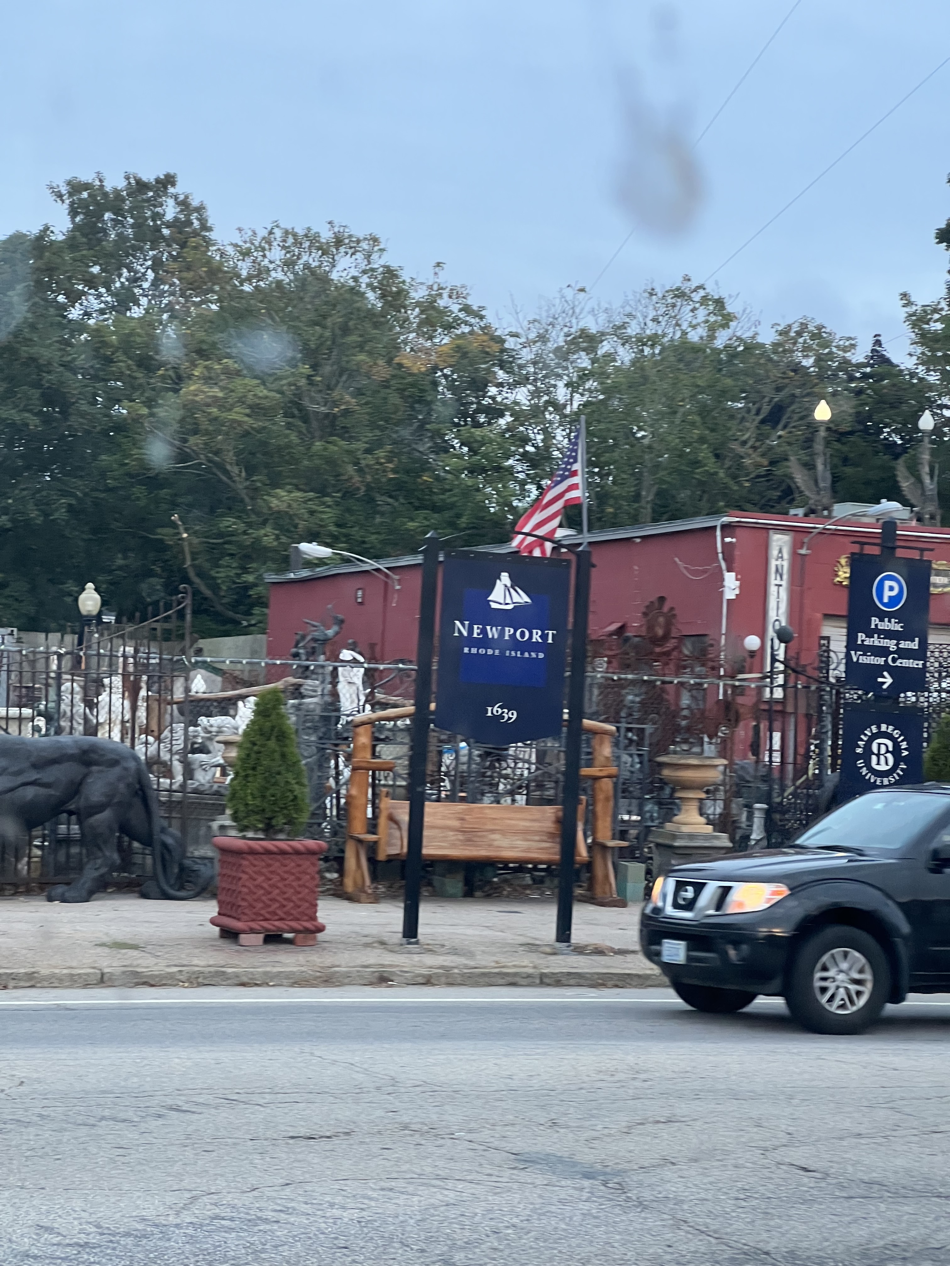 We were greeted by this raccoon the following day as we plotted our journey. I wanted to go to New Haven and see Yale. We wanted to go to Mystic–but no pizza. We had dinner in Newport, RI, and overnighted in Plymouth, MA.