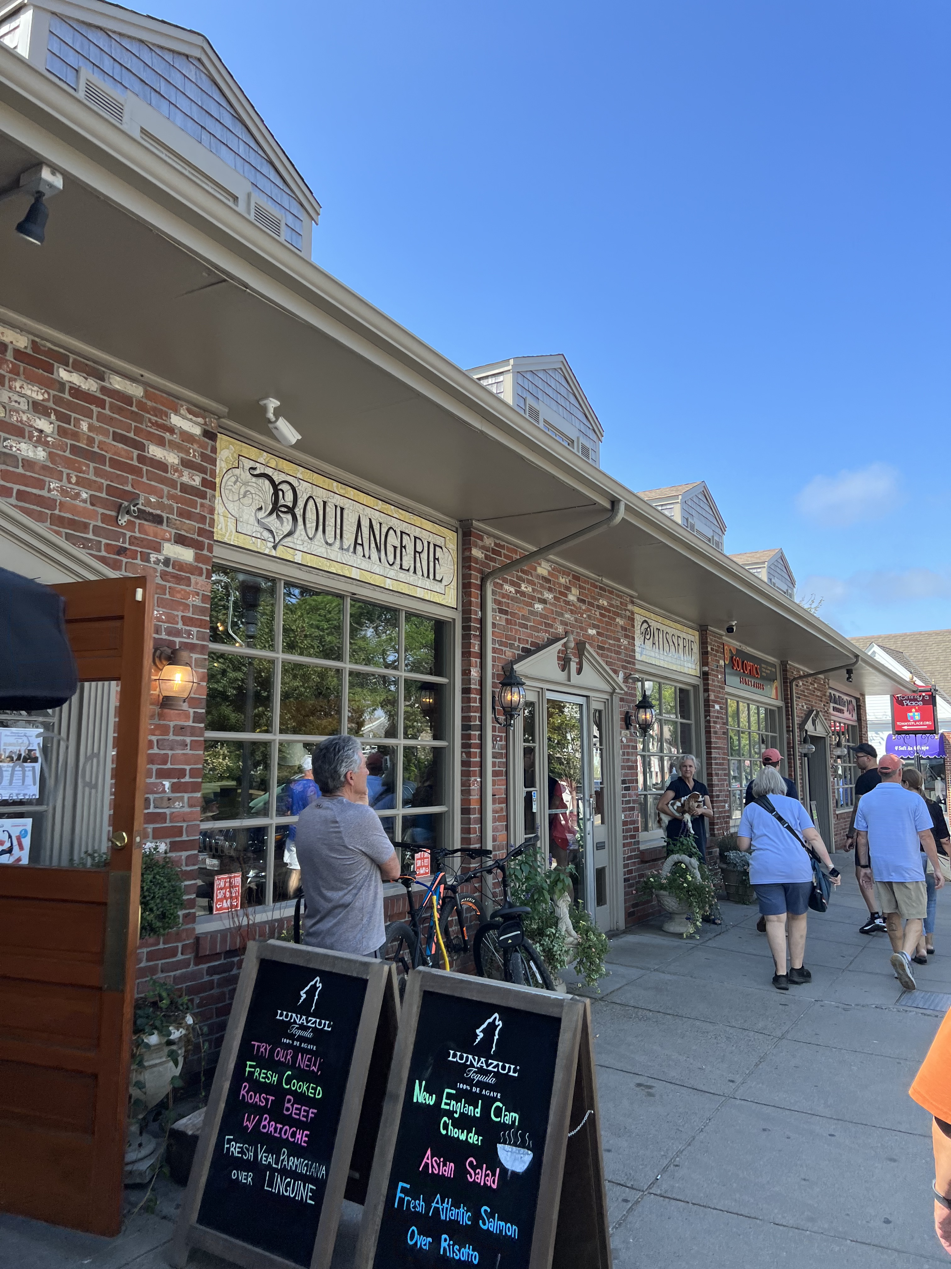 We quickly visited Plymouth the following morning but could not reach the rock or the harbor because of a runner’s race. We drove to Falmouth, MA, went to Maison Villette for croissants and pastries, took them to the beach, and had a picnic. Then we drove to Boston and went to Maine, stopping at Cindy’s for lobster rolls that we ate for dinner that night in our rental house.